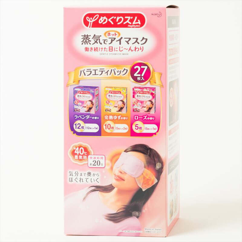 【全国一律送料無料】めぐりズム アイマスク 27枚 蒸気でホットアイマスク バラエティパック ラベンダー・完熟ゆず・ローズ 大容量【あす楽】