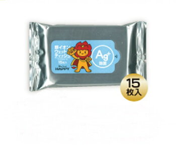 2個セット【即納】【メール便送料無料】携帯用 銀イオン ウェットティッシュ ノンアルコール Ag+除菌 15枚入り 2個セット happyバージョン【1000円ポッキリ】